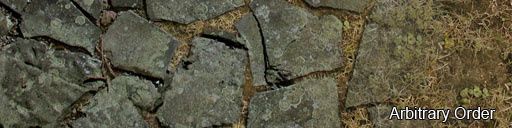 Probably the simplest way of working out your texture order is by thinking of the landscape in geological terms - grass over rocks, rocks over dirt, dirt over bedrock, and so forth. This will help make sure that when you overlap your own landscape layers they make sense visually. Consider the two following examples, one in geologic order, the other ordered arbitrarily.