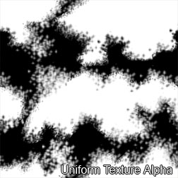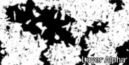 Less obvious, but equally important to every Detailed Terrain texture is the subject of contrast. The Detailed Terrain shader uses a full range of gray scale values, but the most dramatic effects are produced when your alpha channel contains high contrast. While a little blur or gradient will help your texture blend nicely with the layers below it, it is also important to keep contrast in general high, to produce distinct edges. This is discussed in more detail bellow.